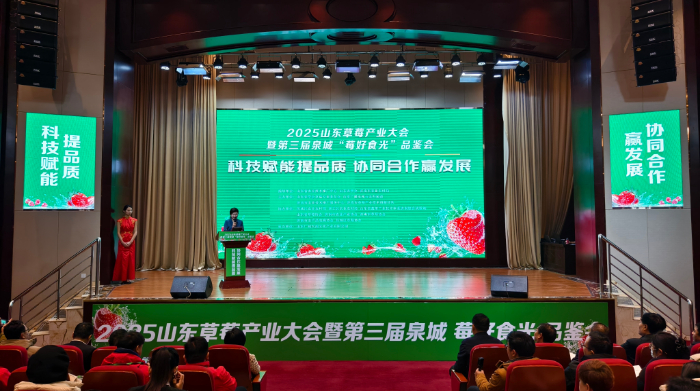2025年1月10日至11日,由山東農(nóng)學會草莓專業(yè)委員會、山東廣播電視臺農(nóng)科頻道、濟南市農(nóng)業(yè)技術推廣服務中心共同主辦的2025年山東草莓產(chǎn)業(yè)大會暨第三屆中國•泉城“莓好食光”品鑒會在濟南召開。本次大會以“科技賦能提品質(zhì) 協(xié)同合作贏發(fā)展”為主題,旨在搭建草莓生產(chǎn)全產(chǎn)業(yè)鏈的交流與交易平臺,探討草莓產(chǎn)業(yè)前沿品種、技術及市場發(fā)展趨勢。山東省農(nóng)業(yè)農(nóng)村廳黨組成員、副廳長楊武杰、濟南市農(nóng)業(yè)農(nóng)村局黨組書記、局長孟帥、山東農(nóng)學會秘書長張希軍等出席了會議。來自全國各地的草莓專業(yè)合作社、種植基地、采購企業(yè)、農(nóng)資及設施企業(yè)負責人等300余人參加了此次盛會。