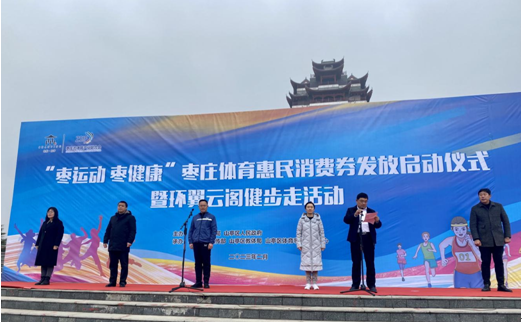 為進(jìn)一步拉動(dòng)體育消費(fèi),擴(kuò)大體育市場(chǎng)供給,促進(jìn)體育產(chǎn)業(yè)活力,吸引更多群眾參與全民健身運(yùn)動(dòng),2月10日上午10:00,“棗運(yùn)動(dòng) 棗健康”棗莊體育惠民消費(fèi)券發(fā)放啟動(dòng)儀式暨環(huán)翼云閣健步走活動(dòng)在山亭區(qū)翼云閣廣場(chǎng)成功舉辦。