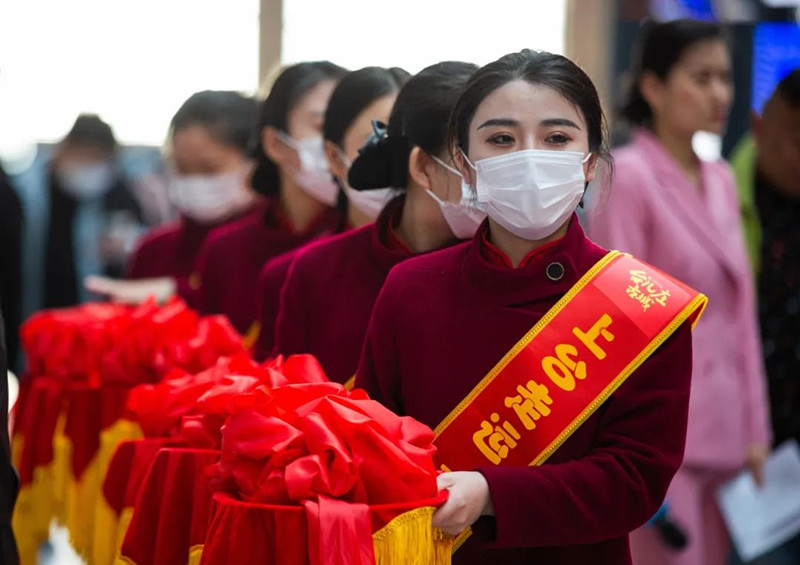 隨后,出席嘉賓共同為“臺(tái)兒莊古城”高鐵冠名專列首發(fā)啟程進(jìn)行剪彩并互贈(zèng)紀(jì)念品。